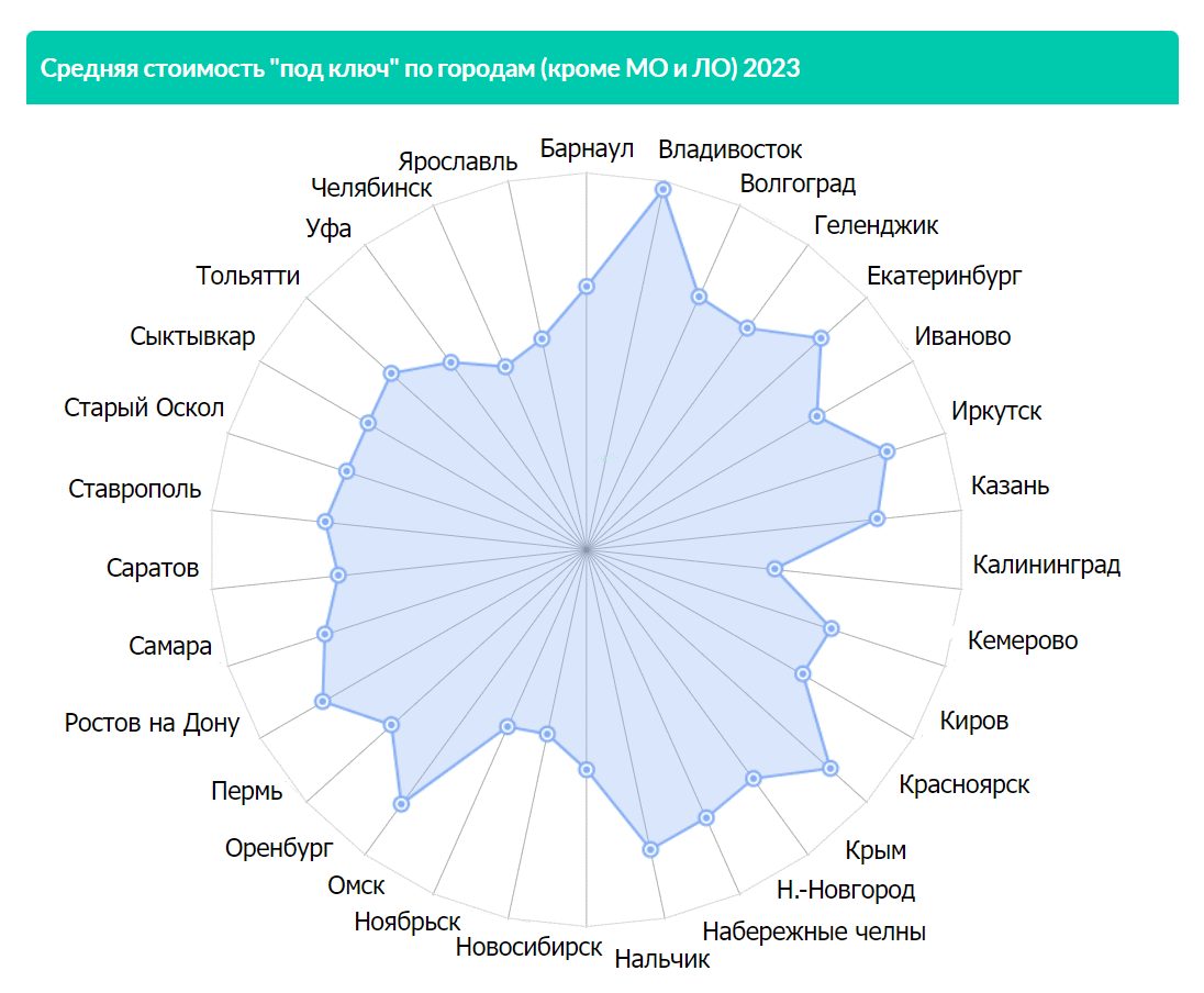 - Стоимость "под ключ" находится на уровне около 240,000 рублей, близко к Санкт-Петербургу.